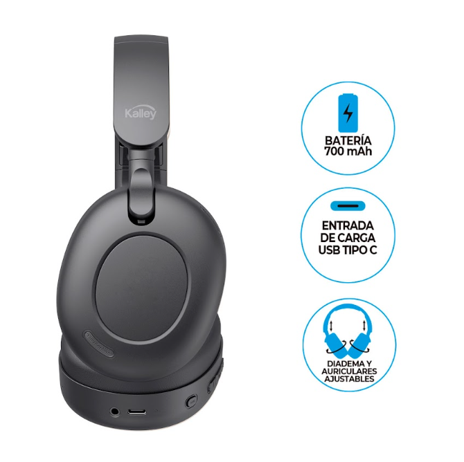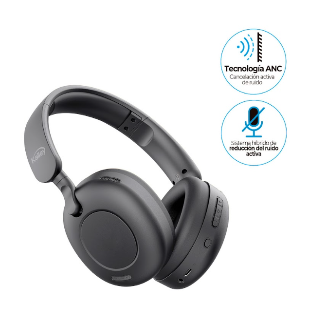 Audífonos de diadema color negros con cancelación activa de ruido, 62 horas de reproducción (volumen al 50% en modo Bluetooth), Posibilidad de conectar por cable auxiliar en caso de que el dispositivo no cuente con Bluetooth, Modo ambiente: Amplifica el sonido ambiente; puedes permanecer atento a tu entorno sin tener que quitarte los audífonos, Modo Juego: Consigue minimizar el tiempo de retardo para tener una experiencia de juego mejor y más rápida