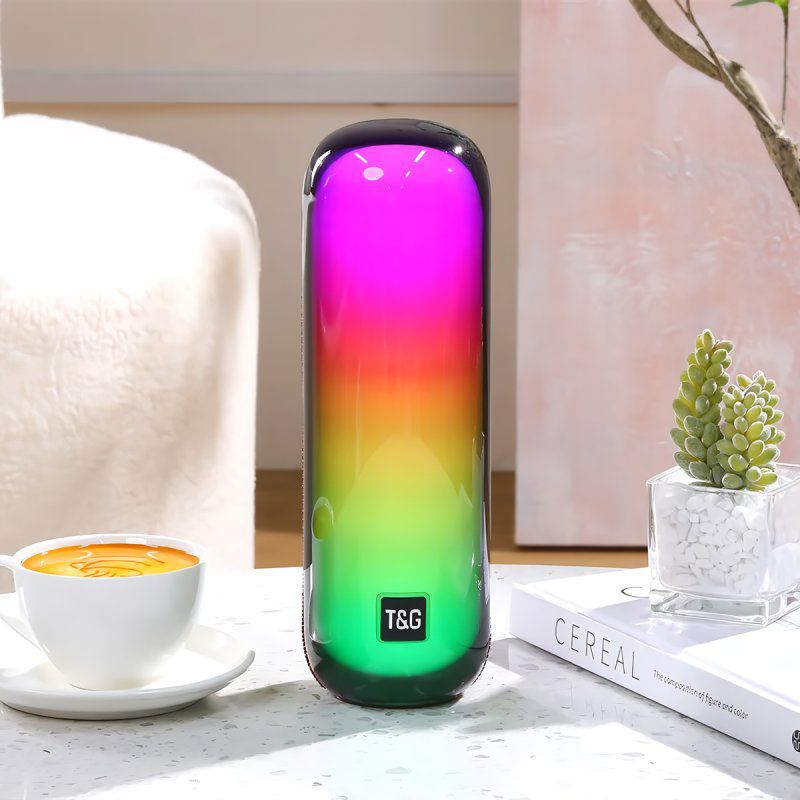 Descripción 1. Versión de Bluetooth: V5.3 2. Rango de transmisión inalámbrica: 10M 3. Relación de ruido de audio: 90 dB 4. Capacidad de la batería: 1200 mAh 5. Voltaje incorporado: 3,7 V 6. Reproduzca a volumen normal: apague la luz LED mágica durante aproximadamente 3 horas 7. Tamaño del altavoz: 45 mm x 2 8. Potencia del altavoz: 4O/5W x 2 9. Respuesta de frecuencia: 120Hz-20KHz 10. Tiempo de carga: aproximadamente 4H 11. Adopta un chip de decodificación de audio inalámbrico avanzado para admitir la conexión de dispositivos inalámbricos 12. Admite radio FM y puede buscar directamente estaciones de radio en el área de escucha 13. El tono es suave, claro y dinámico, con distintas capas. 14. Admite lectura directa de tarjeta TF y disco U 15. La distancia de recepción inalámbrica puede ser de hasta 10 metros. 16. Admite entrada de audio LINE IN, lo que le proporciona la función de altavoz de la computadora;Se puede conectar directamente a teléfonos móviles/tabletas/y televisores para emparejamiento inalámbrico y reproducción de música. 17. No hay conexión en modo inalámbrico, se apaga después de media hora 18. Múltiples modos de parpadeo de luces LED de colores, las luces pueden parpadear con la melodía musical y se pueden cambiar con un solo clic.La melodía musical no solo se puede escuchar sino también ver. 19. Admite la función TWS 20. Paquete incluido: A. 1 altavoz Bluetooth B. 1 x Cable de carga C. 1 Manual de usuario en inglés y chino»