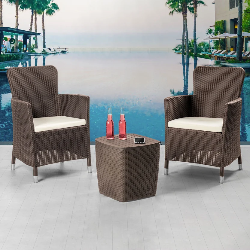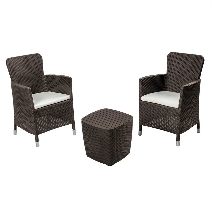 •Características : Juego de sala capri estar se compone de dos sillones con base tipo aluminio y una mesa de centro ideal para exterioresdurable y resistente, se entrega desarmado.Apto para la intemperie sin exceso de agua, sol o nieve.La foto de este producto ha sido ambientada, por lo cual no incluye ningún adorno.El color presentado en la fotografía es una aproximación al color real.Incluye cojines, instructivo de ensamble y bolsa de accesorios (tornillos, llave y tuercas).El cojin basico tiene una altura de 4.5 cm.