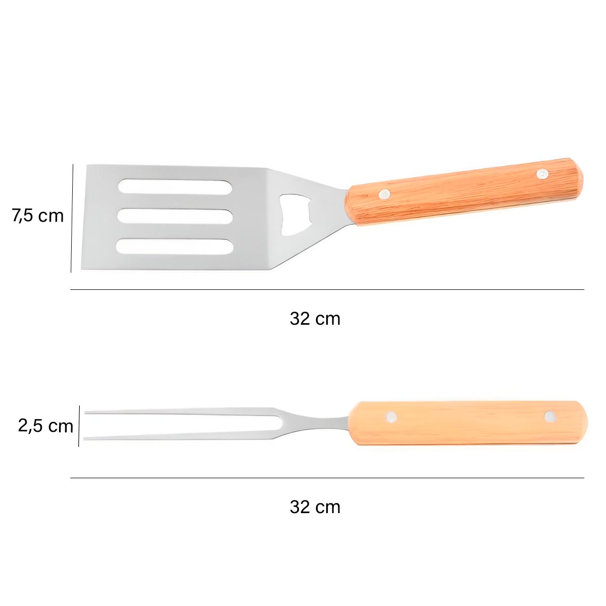 Con este kit de barbacoa podr s preparar las mejores carnes en tu parrilla con 4 piezas perfectas para todo tipo de preparaci n de barbacoas adem s de contar con un c modo estuche perfecto para guardar las herramientas y llevarlas a donde t quieras Material Acero inoxidable Madera y NailonTama o Aprox Producto Ancho 7 cm Largo 34 cmPeso 588 g Todas las herramientas para asar est n hechas de acero inoxidable de grado alimenticio m s seguro resistente y duradero f cil de limpiar y usar Aptas para el lavavajillas y no se oxidar o se agrietar como los utensilios de madera Todos estos utensilios de parrilla de barbacoa est n dise ados espec ficamente para un uso seguro con un mango largo de 12 cent metros manteniendo las manos alejadas del calor para evitar quemaduras Con un estuche de tela oxford puede almacenar f cilmente este conjunto de barbacoa entre usos y asegurarse de que cada herramienta est perfectamente organizada Con todos los utensilios esenciales para asar que necesita para disfrutar de una agradable experiencia de barbacoa incluyendo esp tula tenedor pinzas y cuchillo Perfecto para barbacoa camping picnics y cocina al aire libre Este conjunto completo de accesorios para parrilla al aire libre es un excelente regalo para el maestro de parrilla foodies fan ticos de la barbacoa cocineros amantes del campamento y m s Contenido del Paquete 1 Tenedor 1 Esp tula 1 Pinzas 1 Cuchillo 100 Nuevos