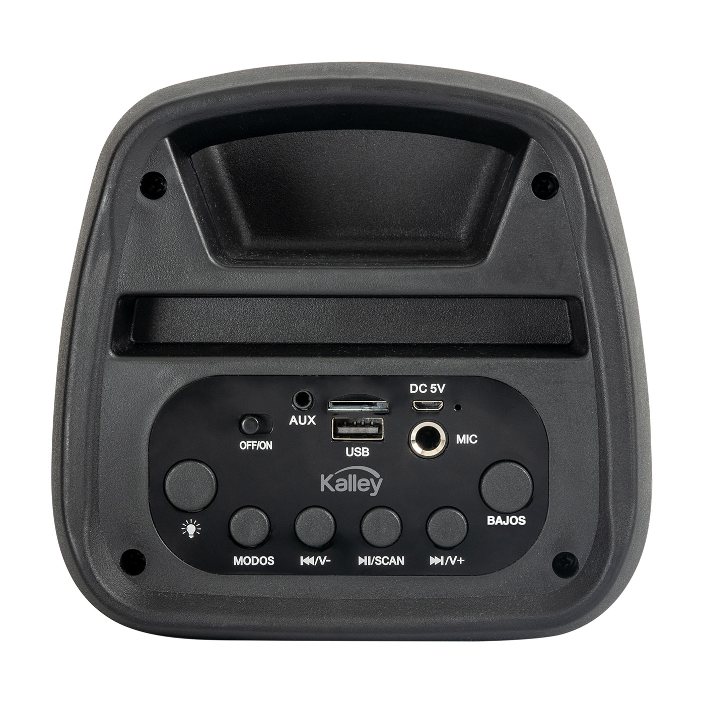 Parlante Portátil Kalley K-P5. Medidas: (Alto x ancho x fondo: 16,5 x 20 x 15,5cms) Potencia: 5W RMS Bluetooth Radio FM Tecnologia TWS Entrada USB, SD, auxiliar Entrada para micrófono Batería: 6 hr con volumen al 50%