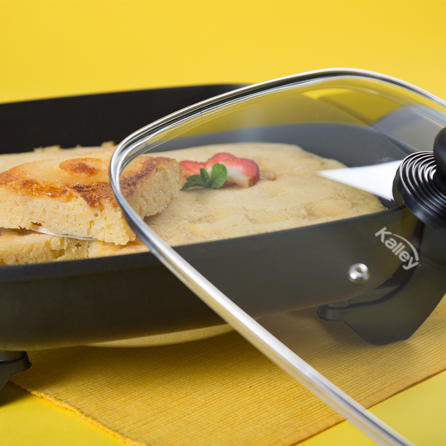 Sarten Electrica K-SEC15V, Selector de temperatura, Tapa de vidrio, Incluye espátula,Potencia de 1500W.